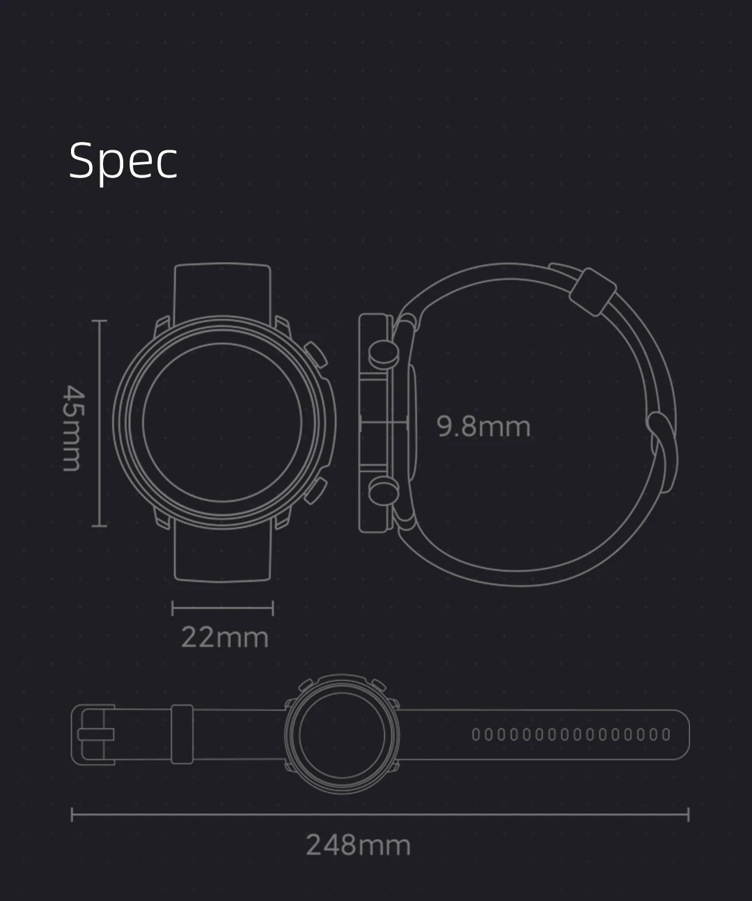 Band dimension: Width=22mm, Unfolded length 248mm